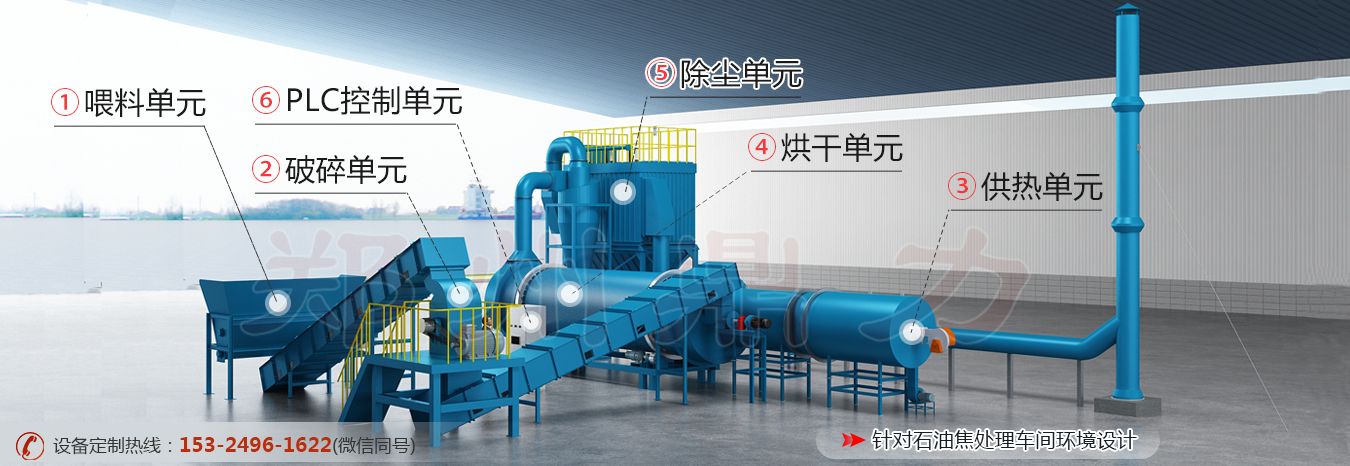 鄭州鼎力工業(yè)滾筒烘干機廠家定制各種規(guī)格型號和熱源形式的石油焦烘干設備,配套對應的除塵器系統(tǒng),運行成本低,性能穩(wěn)定,技術成熟。