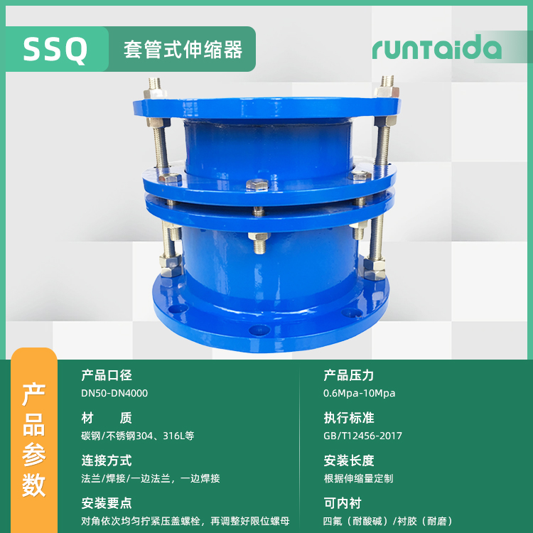 SSQ限位伸縮器安裝前須松開壓盤螺栓,將該產品拉至安裝長度,然后用對角法擰緊,切勿壓偏。如架空使用,兩端須安裝相應的固定支架。安裝過程中調整好產品兩端或法蘭的安裝長度,對角均勻擰緊壓蓋螺栓,再調整好限位螺母,以保證管道的穩定運行。在安裝完成后,需要檢查伸縮器是否能夠正常伸縮,限位功能是否有效。