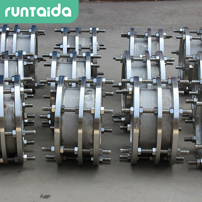 該裝置簡單方便,閘閥裝置方便,可接受管道的軸向拉力.金屬和密封圈嚴格按照應用性能和客戶要求選擇不同級別的不銹鋼.各部分的連接螺栓由高強度碳鋼或不銹鋼制成.由于它與彈性管之間有一定的間隙,因此它具有一定的軸向和徑向位移.