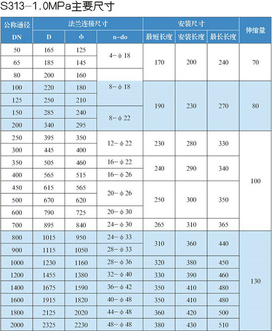 伸縮接頭起到了良好的填補作用,代替了U型管。伸縮器可用于給排水工程方面,用于熱力工程方面的,一般溫度按250℃,壓力按1.6MPa出廠,同時也可根據用戶的需求而生存特殊參數系列的產品,以滿足于煤氣、石油、化工、水電等領域,其連接形式有:雙盤式、插盤式、承盤式;法蘭連接尺寸按現行國家標準,也可按用戶要求加防拉脫限位螺栓。